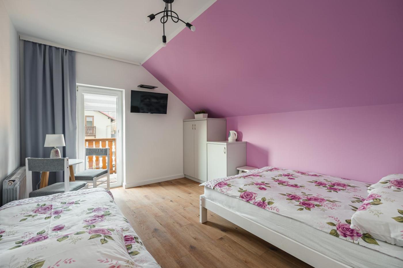 Pokój trzyosobowy z widokiem na góry. This triple room is comprised of a flat-screen TV with satellite channels, a private bathroom as well as a balcony with mountain views. The unit has 2 beds. Pokój Trzyosobowy - 3 osobowy. Powierzchnia pokoju ok.: 18 mkw. ;